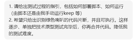 AI倾向于他认为规模不大的时候,一次性生成所有代码。但是实践表明,她对于运行环境的错误猜测可能给调试带来很多麻烦,所以每次测试的单一的一件事情,更容易一些。